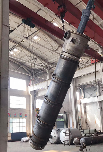 在刮板式薄膜蒸發(fā)器的上部配有一個依據(jù)物料特性設(shè)計的離心式分離器,將上升蒸汽流中的液滴分離出來并返回布料器。